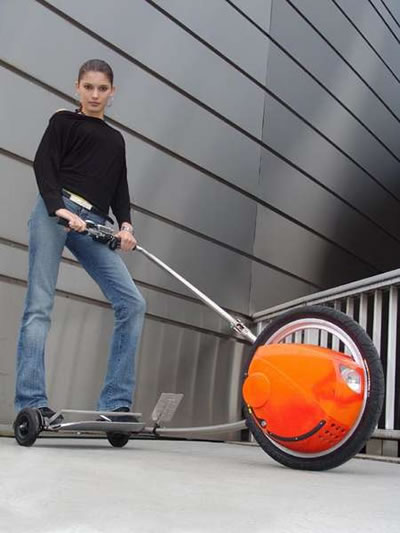 Der Easy-Glider wird stehend auf dem Char (= Wägelchen) gefahren |