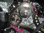Nockenwellenantrieb per Zahnriemen. Obwohl die Entwicklung bei den Zahnriemen